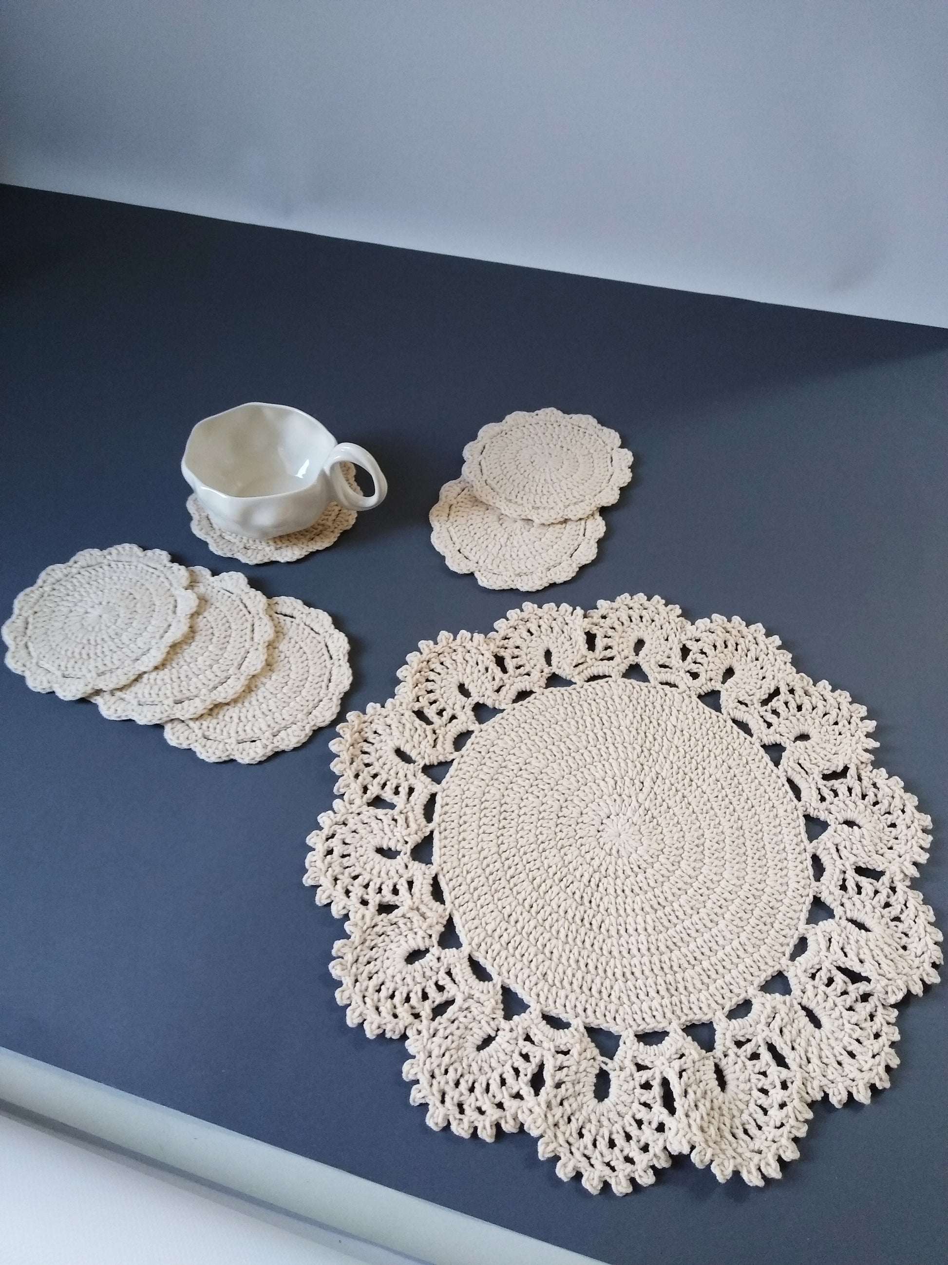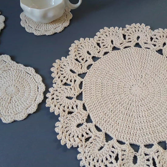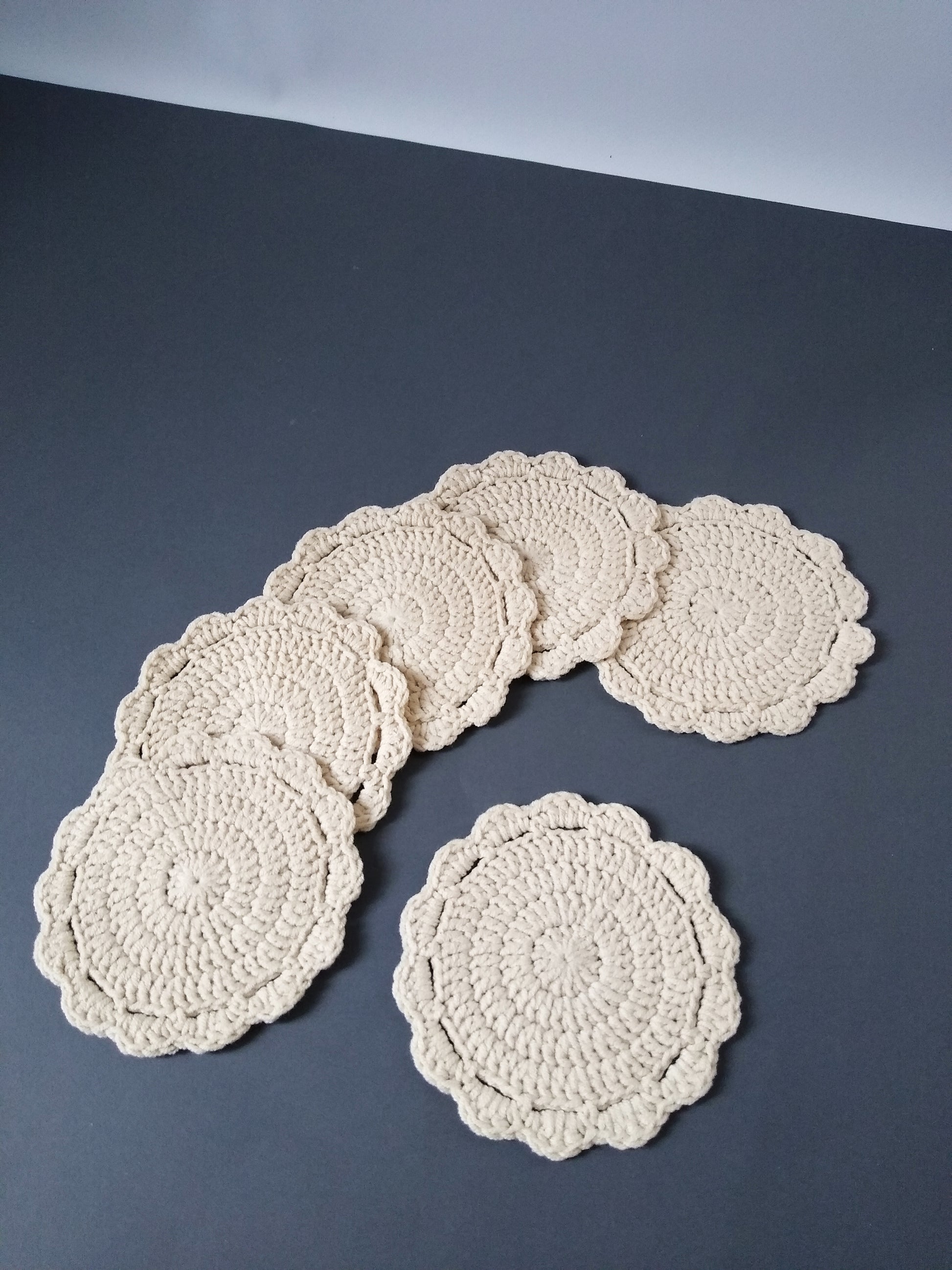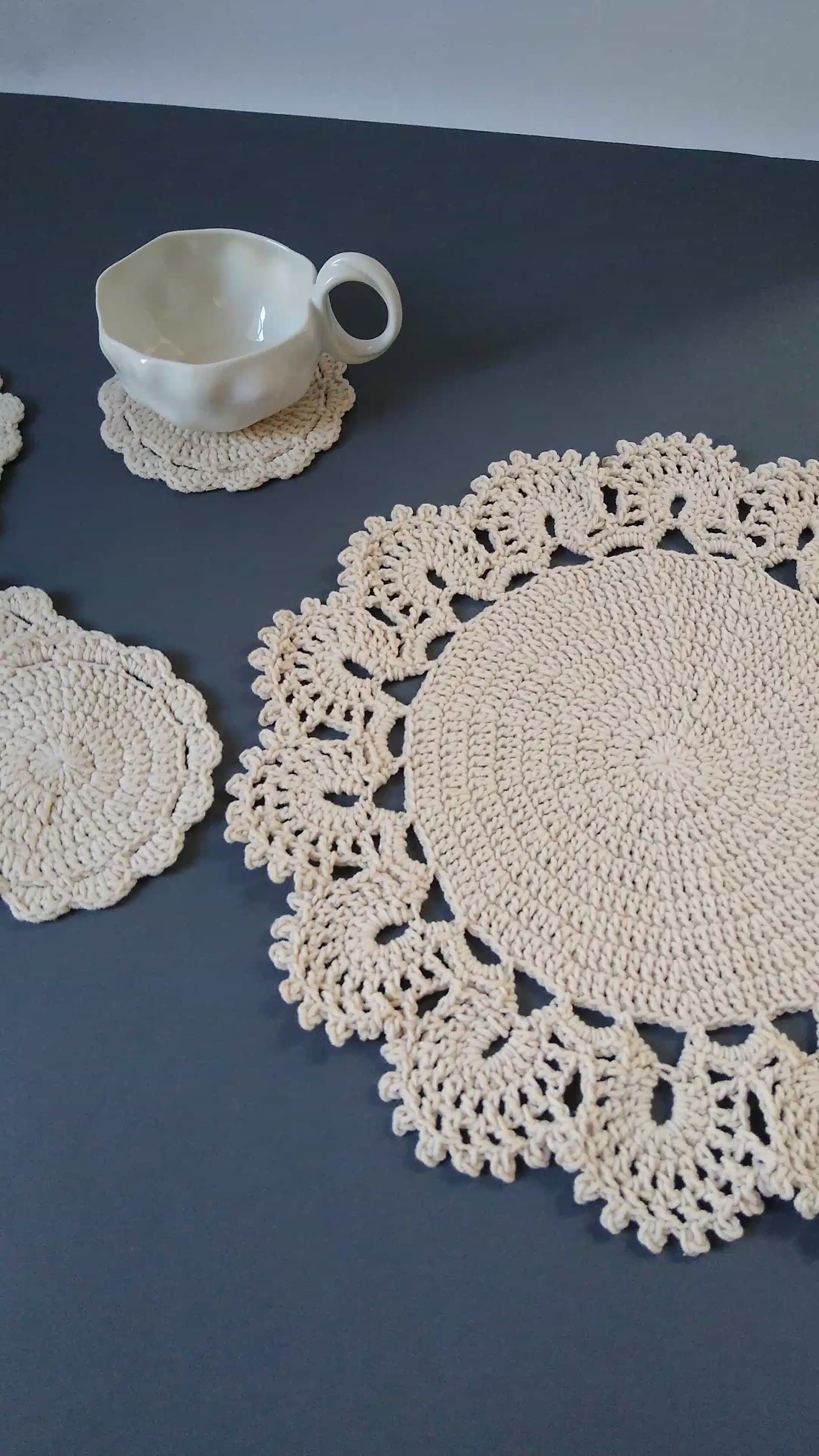 Hand-crocheted cotton coasters—cozy, stylish, and perfect for farmhouse, cottage-core, or boho coffee moments