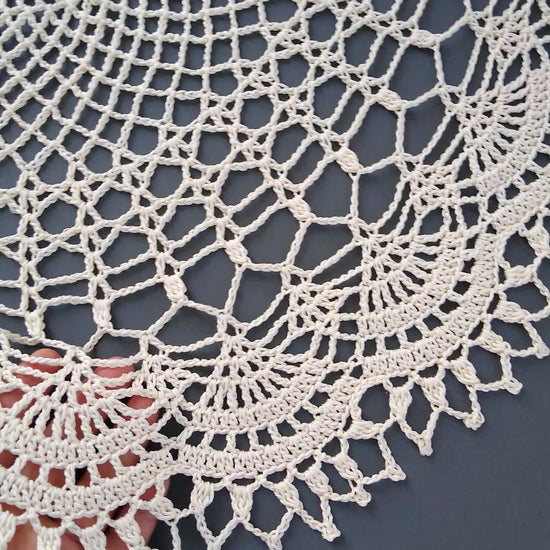 Lovingly handcrafted from 100% cotton, this intricate lace doily adds elegant, heirloom-quality charm to tables, dressers, and displays—perfect for vintage or modern decor