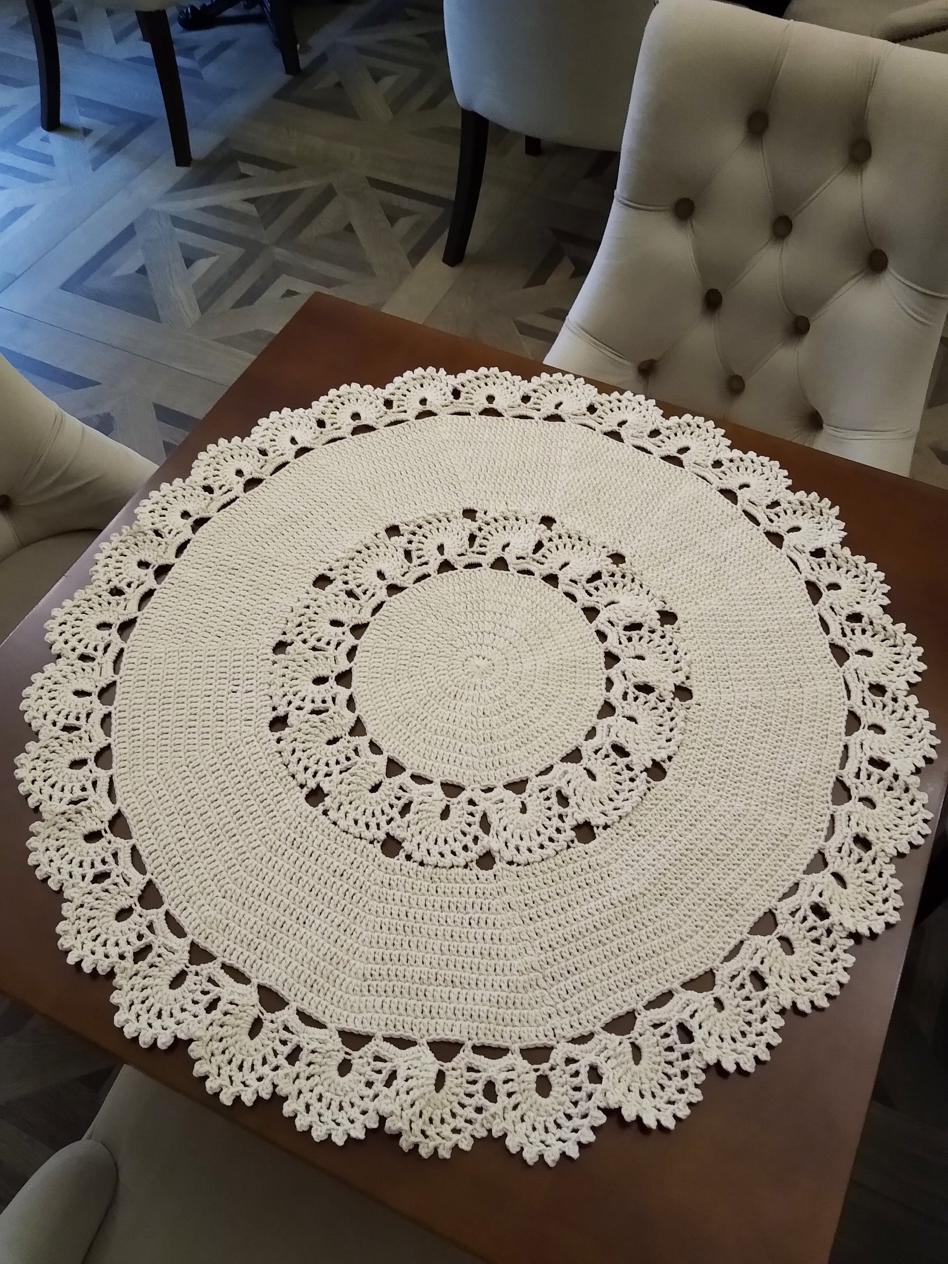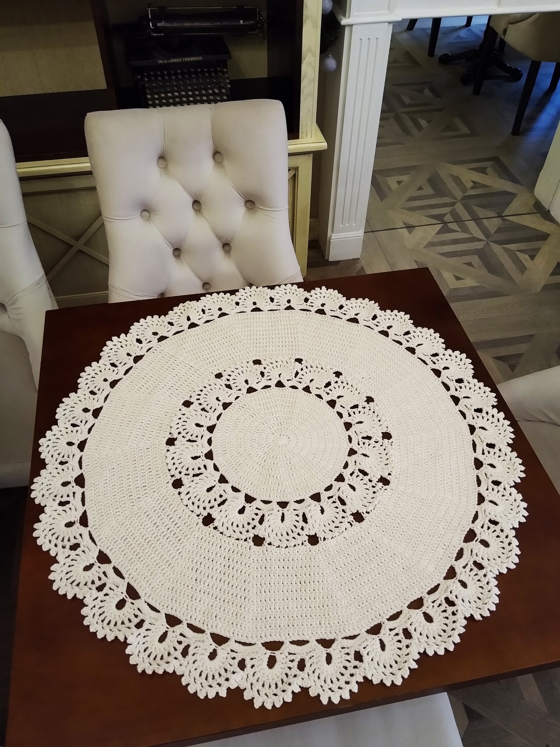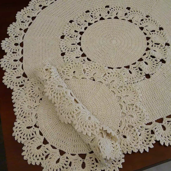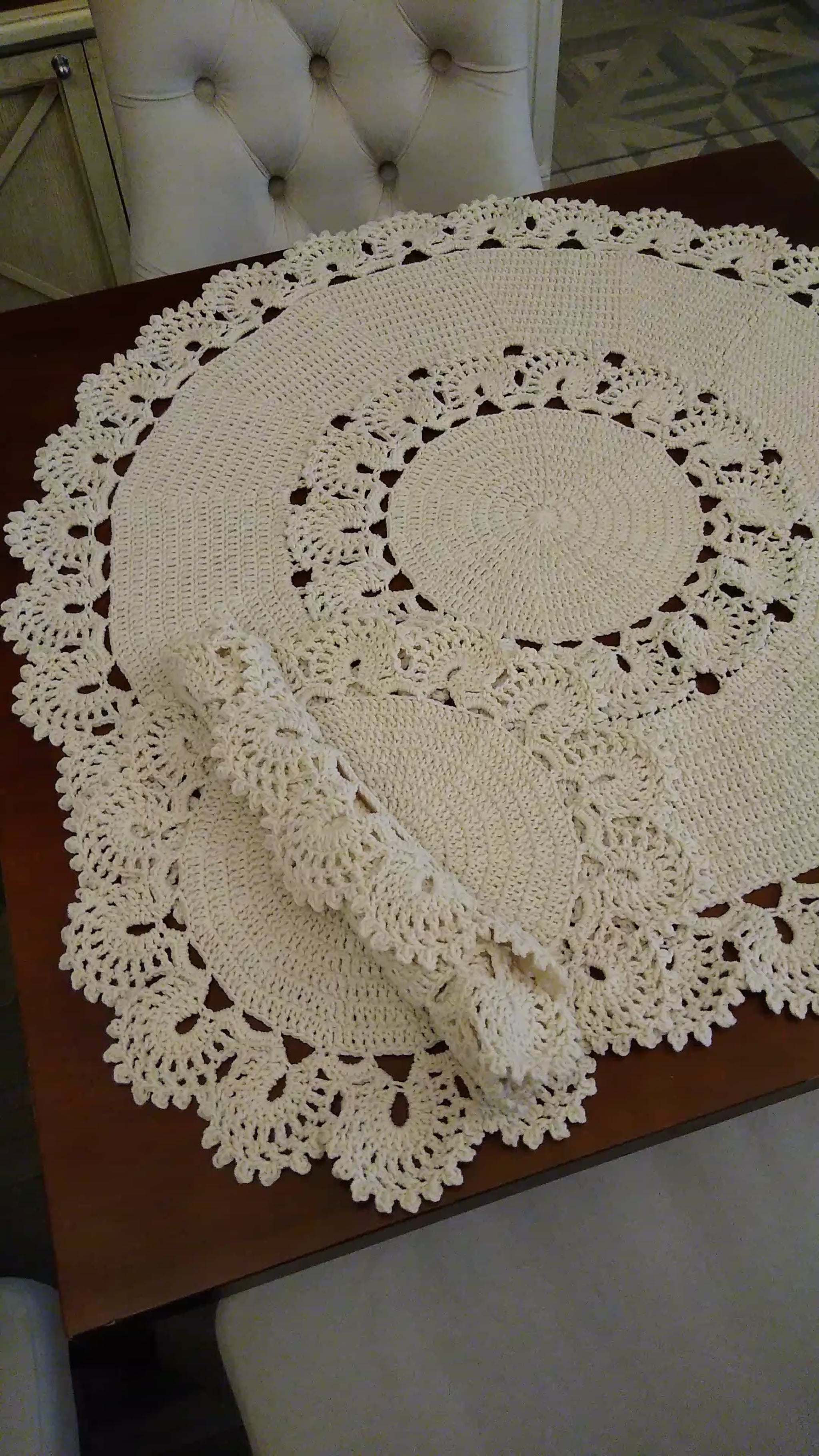 Handmade crochet doily that brings timeless elegance and delicate texture to your table, perfect for enhancing dining spaces, coffee tables, or special occasions with a cozy, classic touch.