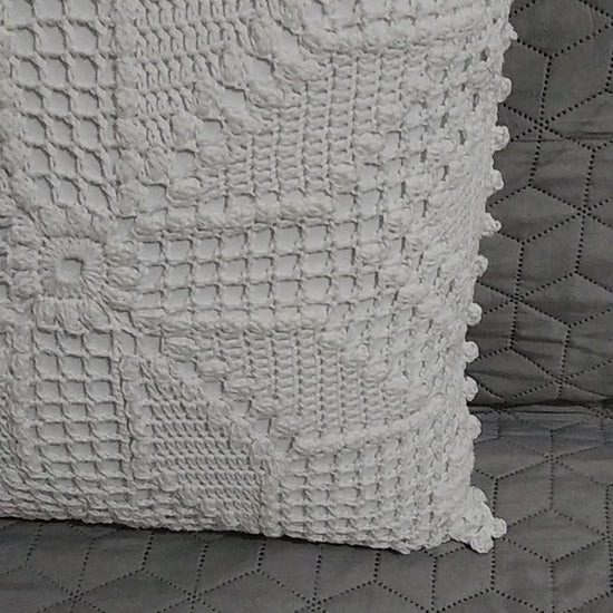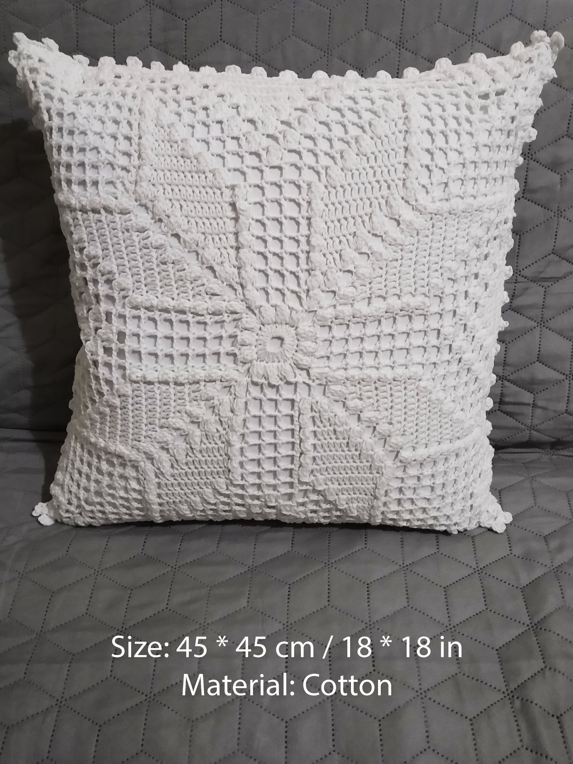 Handmade crochet pillow cover—soft, elegant, and full of texture, perfect for refreshing your home decor