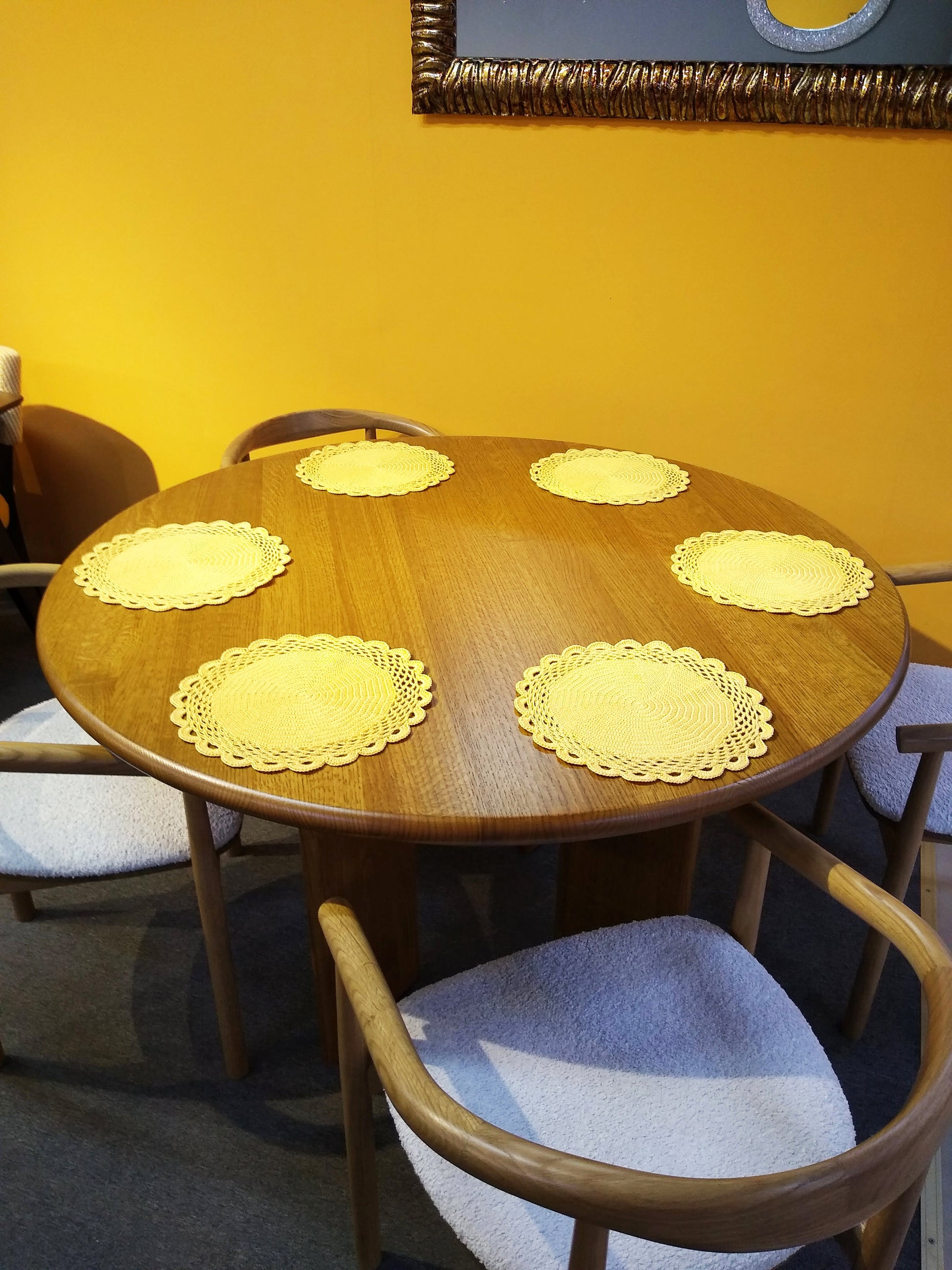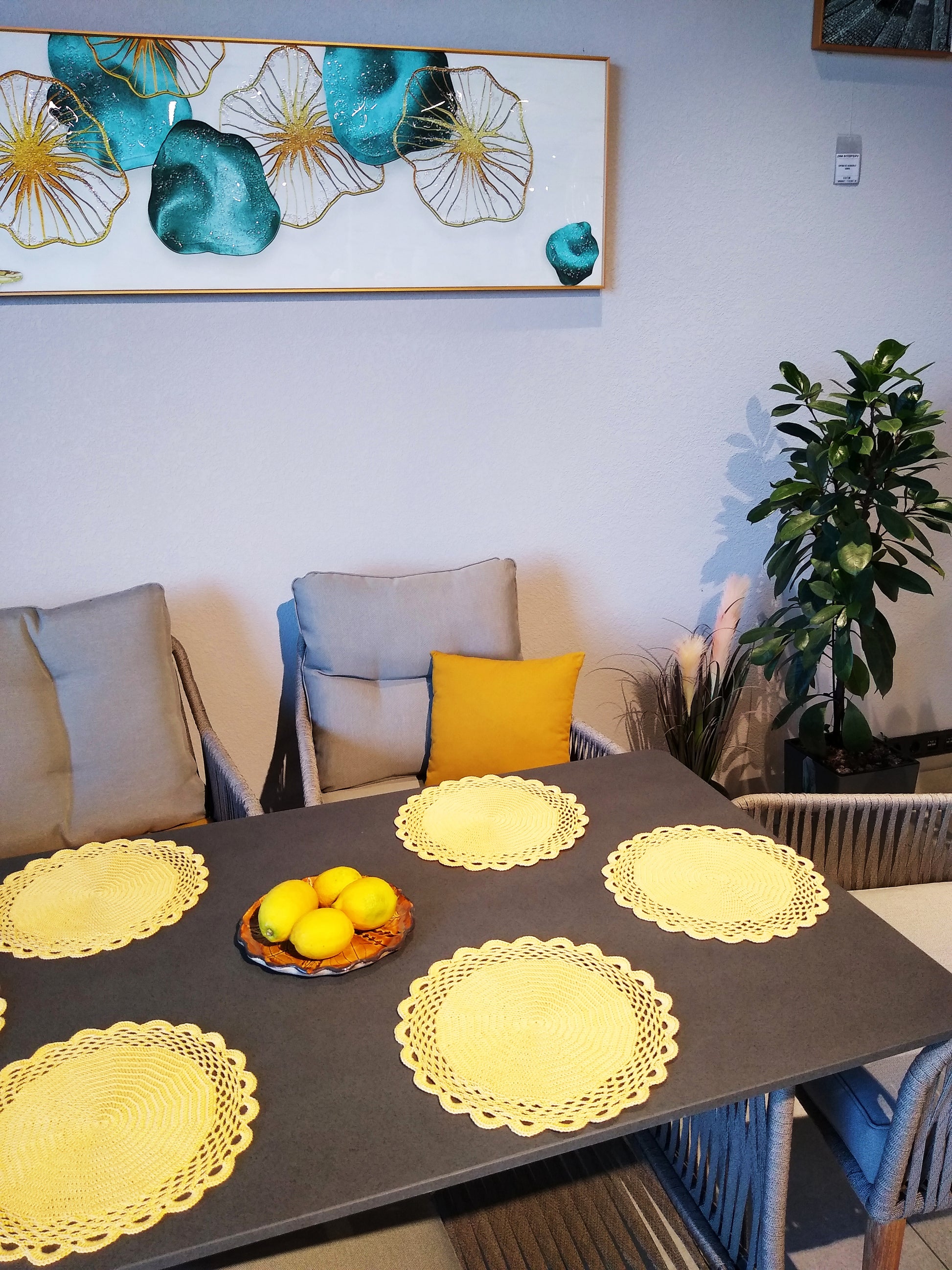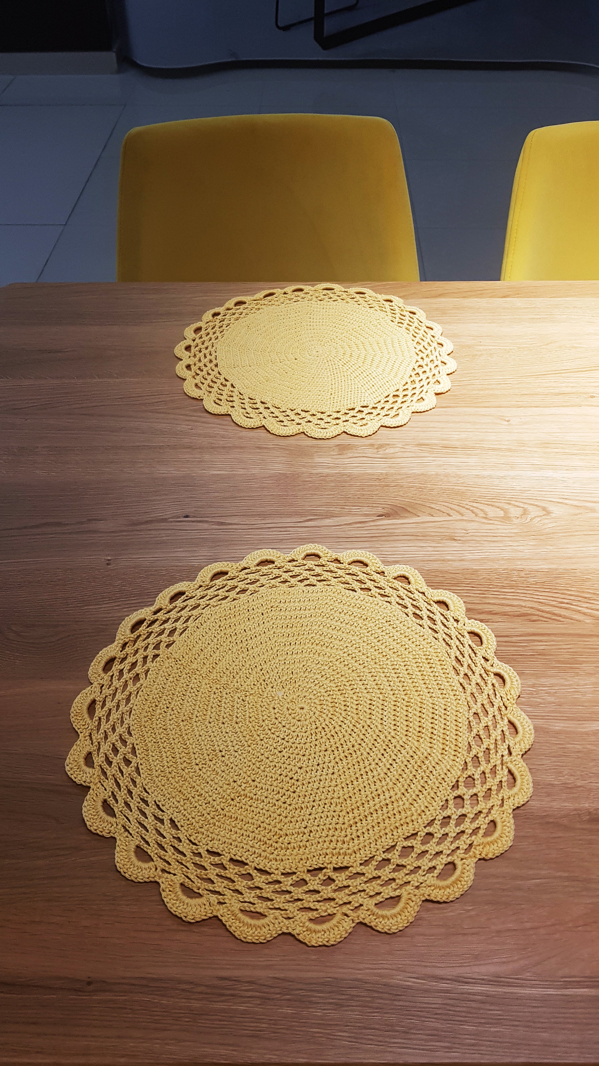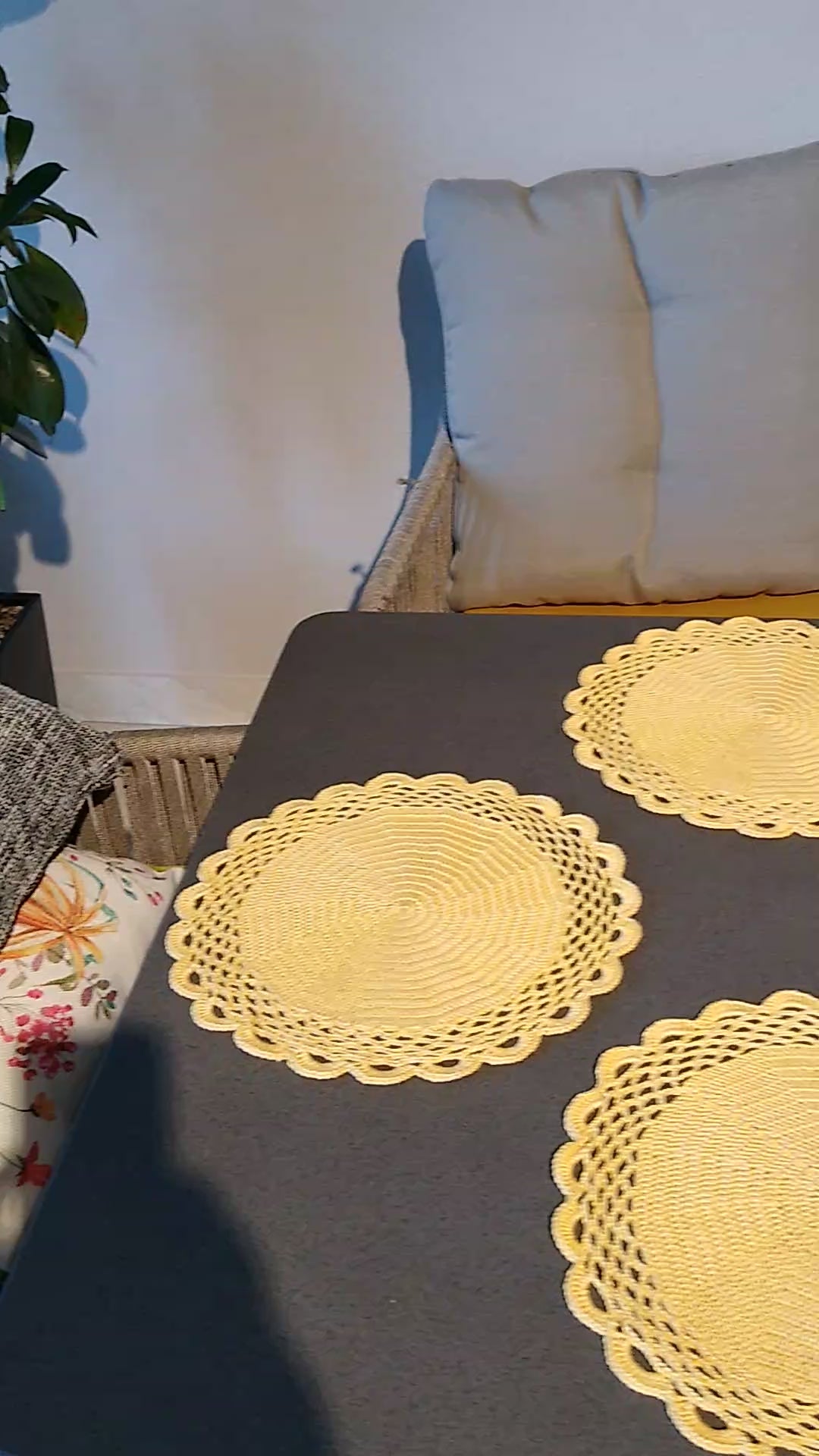 Hand-crocheted natural cotton round placemats—adds texture and elegance to farmhouse, cottage-core, and boho tablescapes, perfect as home décor or a thoughtful gift