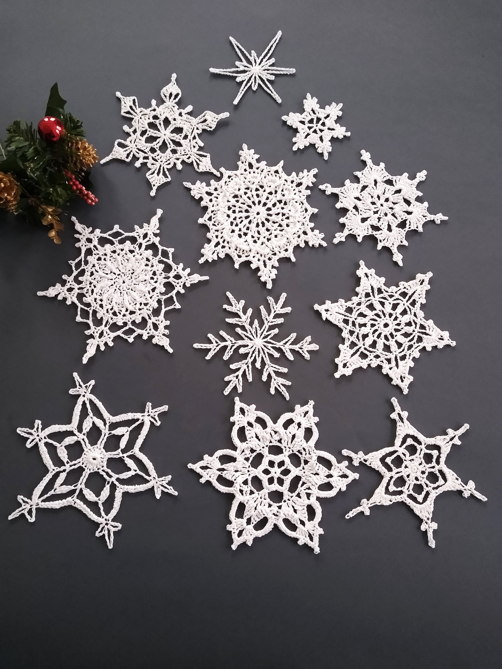 Handmade crochet snowflakes—delicate, festive, and perfect for decorating your tree, gifts, or holiday table
