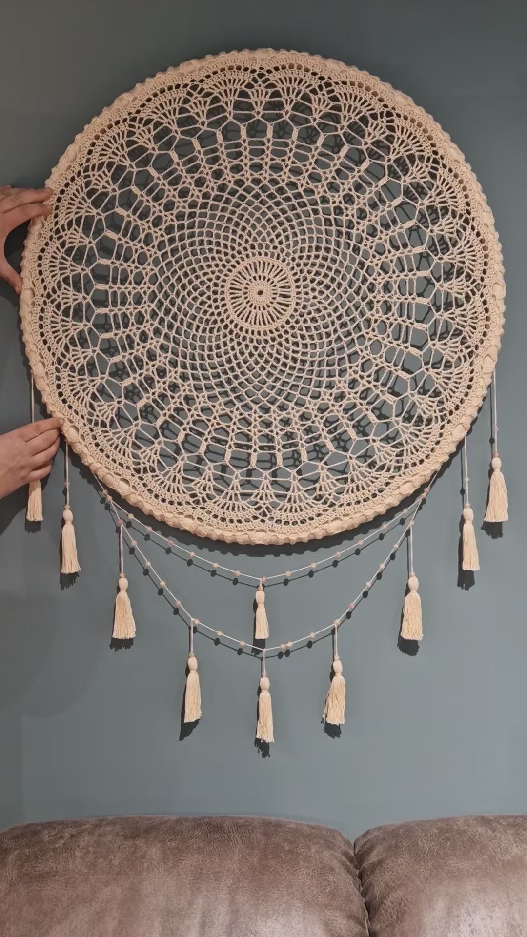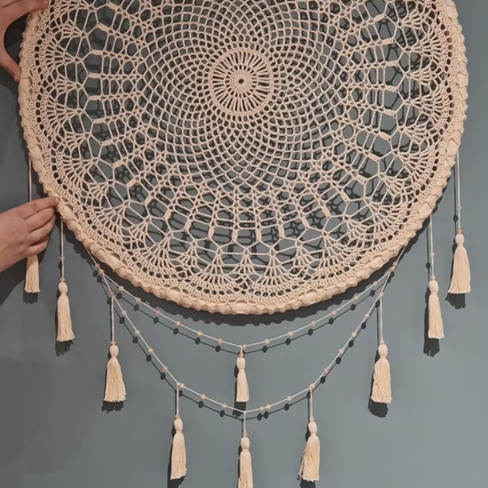 Handmade crochet wall decor that adds a soft, cozy touch to any space. Perfect for boho, farmhouse, or minimalist interiors, and a beautiful accent for living rooms, bedrooms, or entryways.